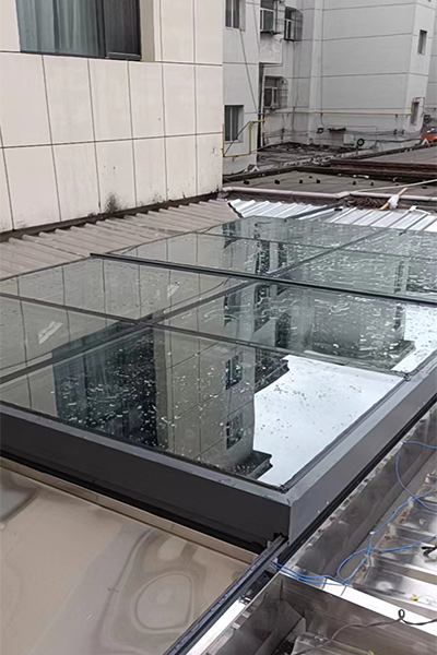施工用途:下雨天打開天窗讓雨水進入室內(nèi),足不出戶邊喝茶邊看雨,室內(nèi)天窗底下有排水系統(tǒng)