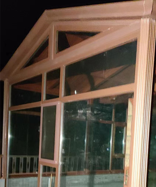陽光房優(yōu)點(diǎn):隔熱、保溫、美觀、大方,頂部采用德高瓦系列保溫頂,繼隔熱又保溫而且防水,使用設(shè)計(jì)壽命高達(dá)50年之久,側(cè)面使用70系列系統(tǒng)窗,三層中空鋼化lowe玻璃,隔熱保溫室內(nèi)溫度控制在25℃左右,夏天超過25℃的熱氣進(jìn)不來,冬天超過25℃的熱氣出不去,室內(nèi)頂部采用木紋免吊頂板,窗戶室內(nèi)采用木紋轉(zhuǎn)印噴涂,結(jié)合室內(nèi)木文地磚,和紅木家具顯得特別有檔次。